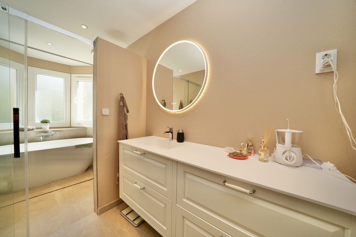 En la primera planta hay tres dormitorios de buen tamaño, incluyendo un dormitorio principal con baño en suite, bañera moderna y acceso a una terraza. Los otros dos dormitorios comparten un baño. Dos de los baños y el aseo de invitados fueron renovados el año pasado. El baño en el nivel del sótano está actualmente en proceso de renovación.