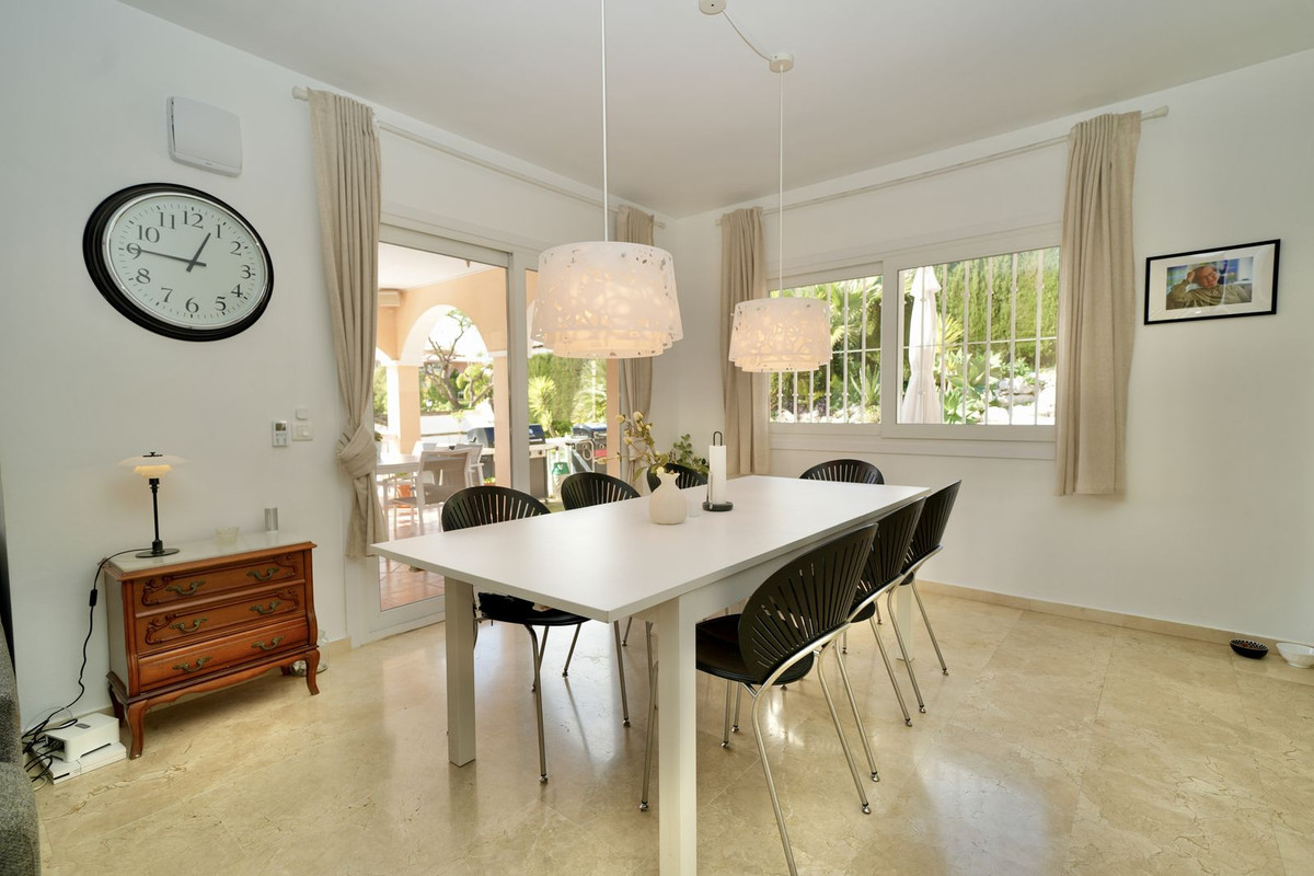 La villa cuenta con un amplio salón-comedor de concepto abierto con una cocina semiabierta, moderna y totalmente equipada, con encimeras de granito, grifo Quooker y electrodomésticos Siemens. Además, dispone de un sistema de filtración de agua potable, lo que permite beber agua directamente del grifo.